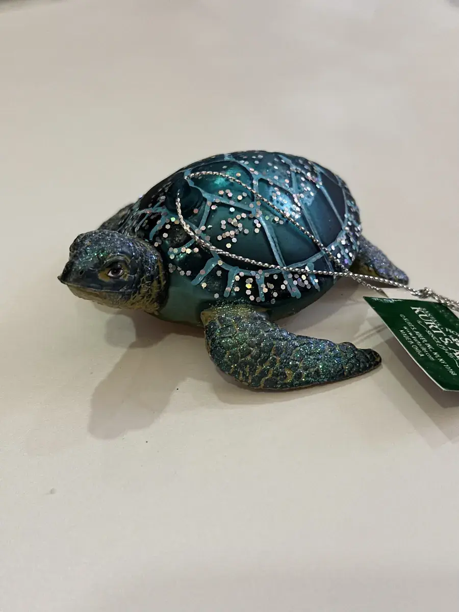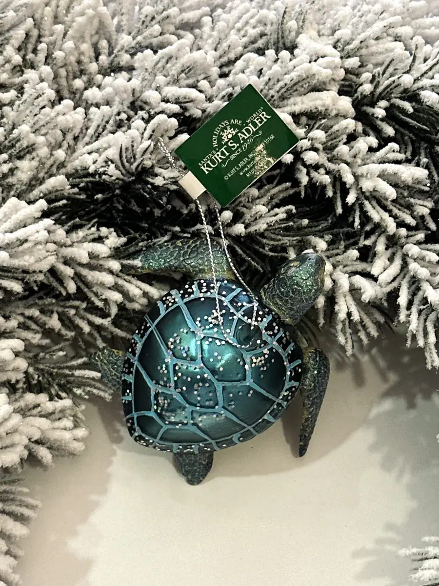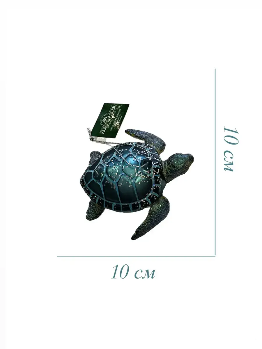 Каждая игрушка "Морская черепаха" создается вручную, что придает ей неповторимый характер и индивидуальность. Мастера фабрики Kurt S. Adler тщательно прорабатывают каждый элемент, чтобы передать всю красоту и изящество морской черепахи. Ручная роспись и блестки, которыми покрыта игрушка, создают эффект волшебного мерцания, который особенно красиво смотрится в свете гирлянд и фонариков. Игрушка выполнена из высококачественного стекла, что обеспечивает её долговечность и сохранение первозданного вида на протяжении многих лет. Блестки на поверхности черепахи сверкают в свете новогодних огоньков, придавая ей дополнительное сияние и праздничное настроение. Элегантный дизайн игрушки делает её идеальным дополнением к вашему новогоднему декору.Игрушка "Морская черепаха" также станет отличным подарком для ваших близких. Подарите её маме, папе, бабушке, подруге или друзьям, и они непременно оценят ваше внимание и заботу. Такой подарок будет символизировать вашу любовь и станет частью их праздничных традиций, принося радость и восхищение. Для создания ещё более праздничной атмосферы разместите рядом с елкой другие новогодние персонажи: снеговика, окружённого мерцающими гирляндами, Деда Мороза и Снегурочку. Эти элементы в сочетании с игрушкой "Морская черепаха" создадут завершённую новогоднюю композицию, которая будет радовать всех гостей вашего дома.