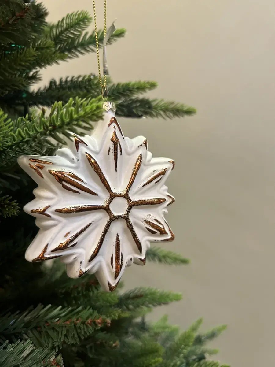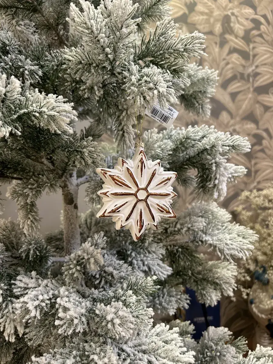 Фабрика Kurt S. Adler с радостью представляет уникальную елочную игрушку Снежинка-пряник, которая добавит особое очарование вашей новогодней елке. Эта изысканная игрушка, выполненная из стекла, украшена блестками и расписана вручную, является воплощением праздничного настроения и зимнего волшебства. Игрушка Снежинка-пряник создана с исключительным вниманием к деталям. Мастера фабрики Kurt S. Adler тщательно прорабатывают каждую линию, создавая сложный узор, напоминающий классический пряничный орнамент. Ручная роспись делает каждую игрушку уникальной, а блестки придают ей мерцающий эффект, который особенно красиво выглядит в свете гирлянд и фонариков. Выполненная из высококачественного стекла, игрушка Снежинка-пряник отличается прочностью и долговечностью. Её блестящее покрытие, имитирующее сахарную глазурь, создаёт ощущение настоящего пряничного изделия. Эта игрушка станет центральным элементом вашей новогодней композиции, привлекая взгляды и вызывая восхищение гостей. Игрушка Снежинка-пряник также станет прекрасным подарком для ваших близких. Её можно подарить маме, папе, бабушке, подруге или друзьям, и они непременно оценят ваш изысканный вкус и внимание к деталям. Такой подарок будет символизировать вашу заботу и станет частью праздничных традиций вашей семьи. Для создания ещё более праздничной атмосферы разместите рядом с елкой другие элементы декора, такие как снеговик, окружённый мерцающими гирляндами, и фигуры Деда Мороза и Снегурочки. .