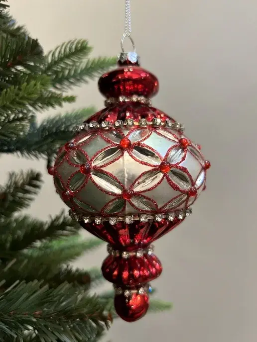Елочная игрушка Сосулька в серебряной сетке N22, 16см, стекло