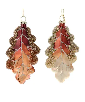 Игрушка Дубовый лист №1/2 Коричневый/Коричнево-бежевый 12,5см стекло Kurt Adler