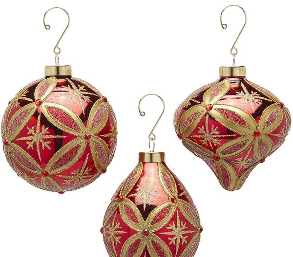 Игрушка Шар красный с золотым узором, в ассортименте, стекло, D10 EDG